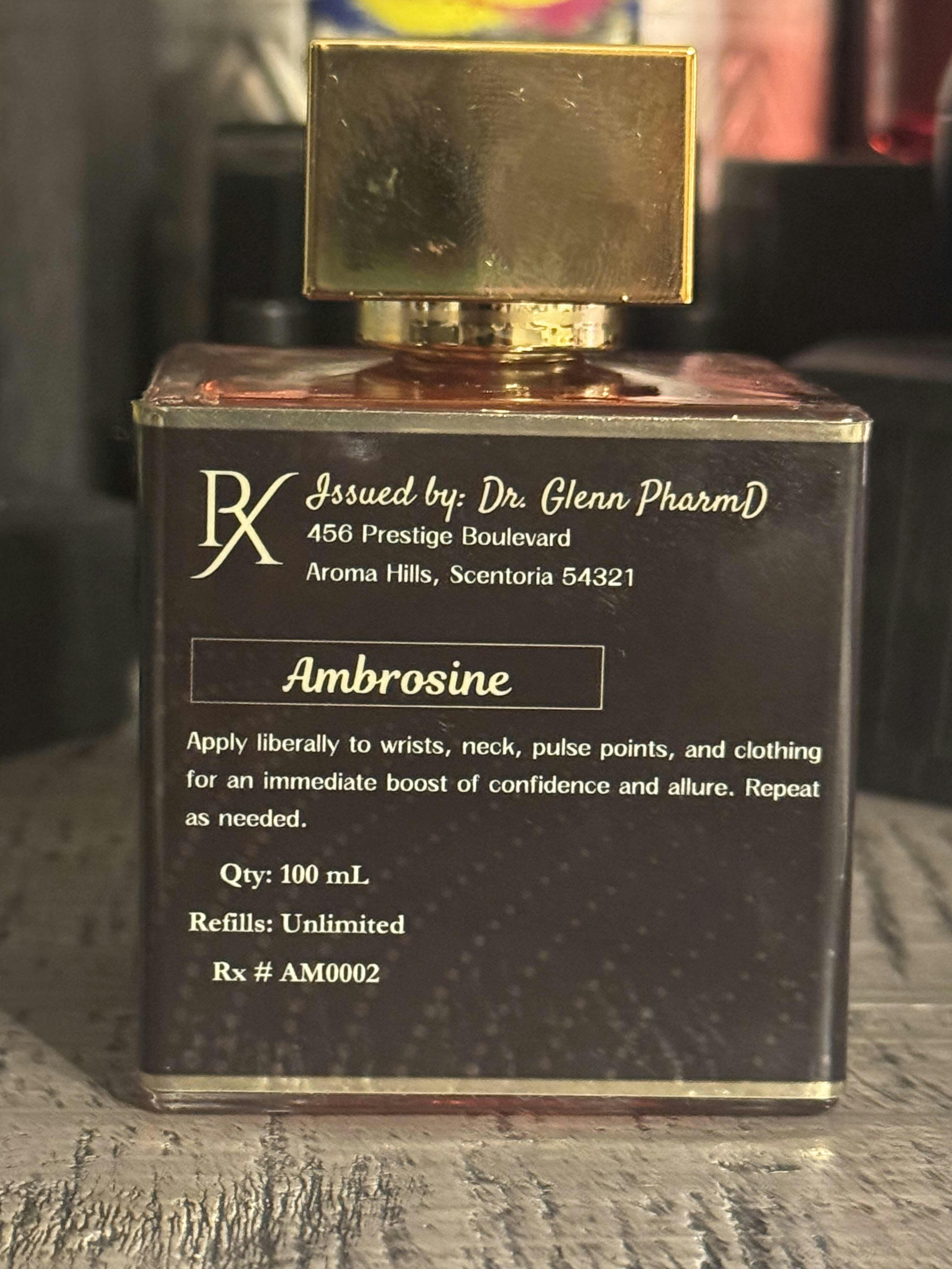 Ambrosine opens with a bright and juicy burst of raspberry, orange, and bergamot, creating a playful and inviting introduction. The heart unfolds with a sweet and whimsical mix of cotton candy, licorice, strawberry, and almond, adding a gourmand and slightly nutty depth. As it dries down, a warm and comforting base of creamy vanilla, caramel, and soft musk emerges, enriched by the woody undertones of cedarwood and cashmeran. The result is a deliciously addictive scent that is both youthful and alluring.